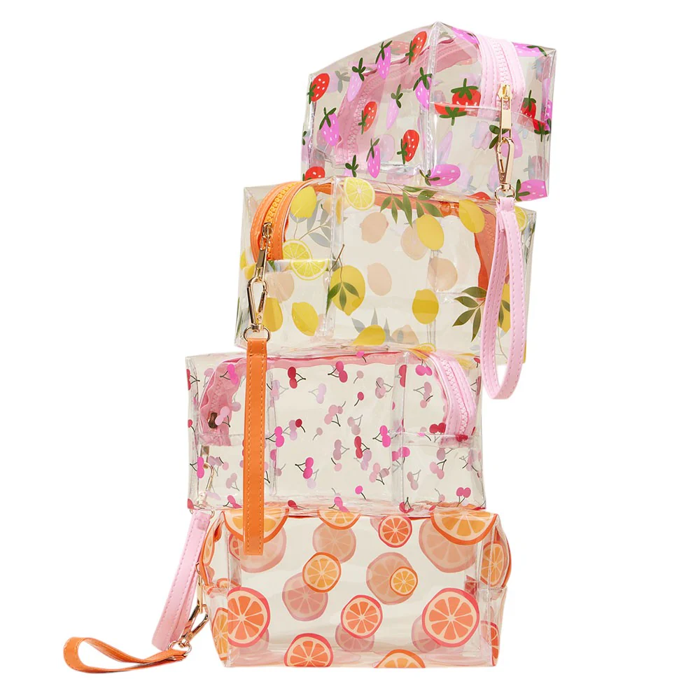Add a touch of fruity fun to your accessory collection with this adorable strawberry print cosmetic bag. Crafted from durable, transparent PVC material, this bag offers a playful yet practical solution for holding your beauty essentials. The clear design with whimsical strawberry patterns not only keeps your items visible but also adds a delightful pop of color to your routine.