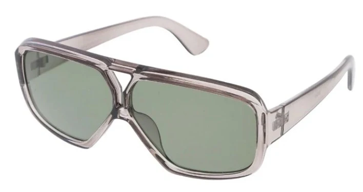 The frame is constructed from high-quality plastic, offering durability and a lightweight feel, ensuring a comfortable fit for extended wear. The matte black finish enhances the contemporary aesthetic while the green-tinted lenses give the sunglasses a sophisticated edge.